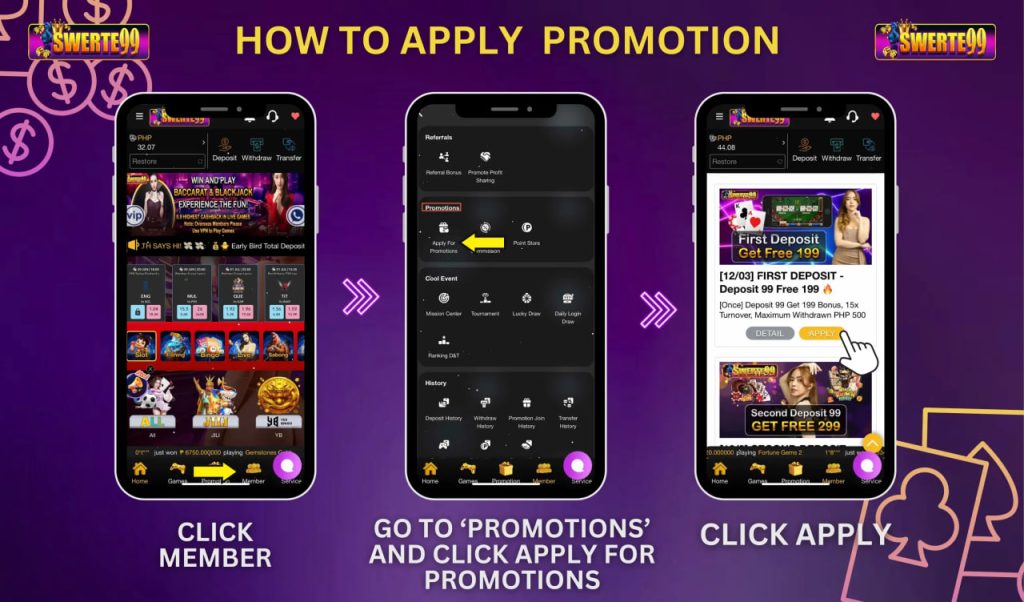 FIRST DEPOSIT – Deposit 99 Bonus 199 is an attractive promotion recently launched by Swerte99 Casino to enhance the gaming experience for both new and old players. The promotion has been carefully designed to ensure fair play and inclusivity, allowing participants to participate in a wide range of games, and Swerte99 remains committed to creating a vibrant and attractive environment for all players through this innovative promotion strategy.