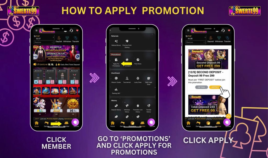 • Para makapag apply click nyo lang po ang MEMBER >> PROMOTION LIST>>CLICK APPLY